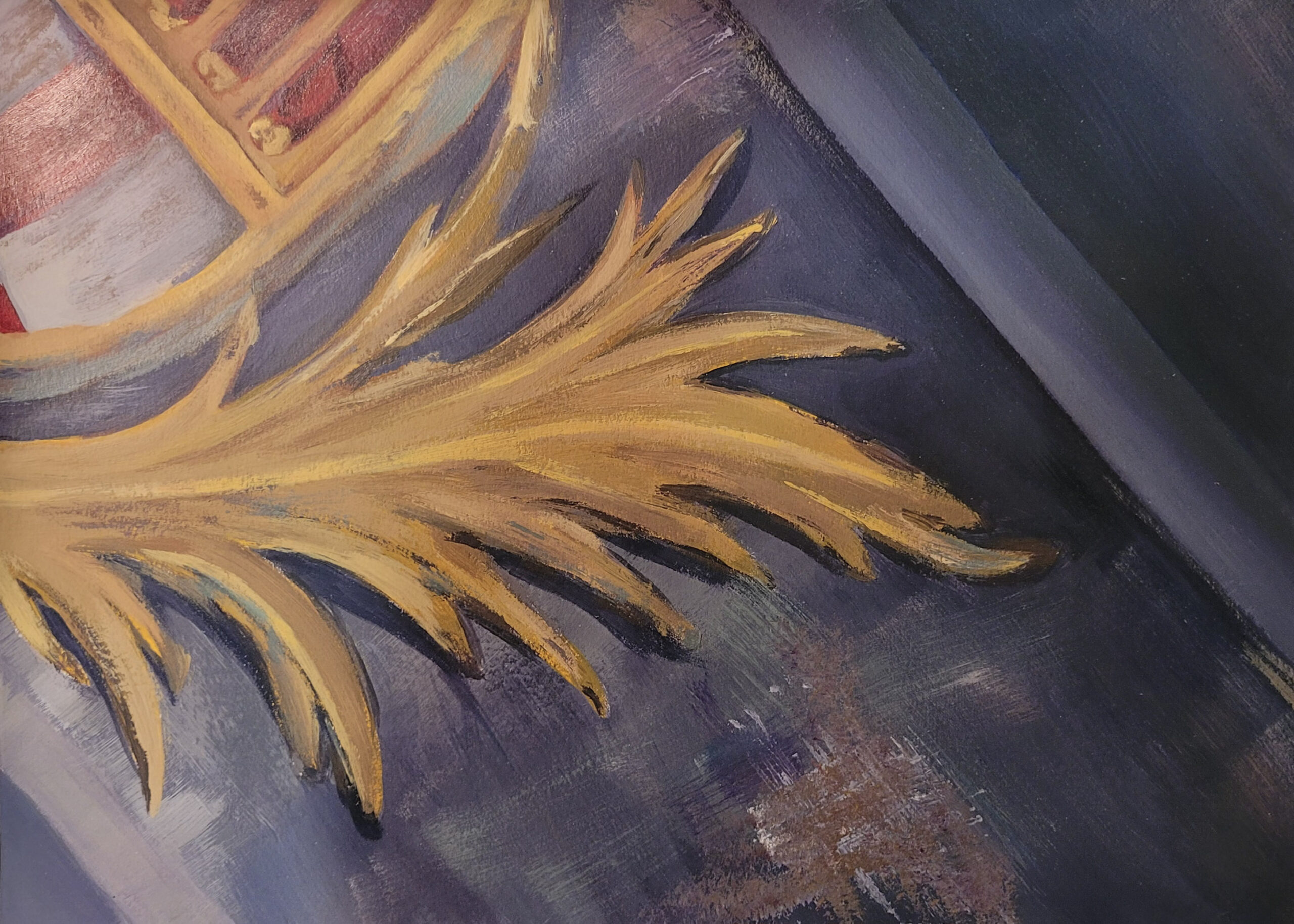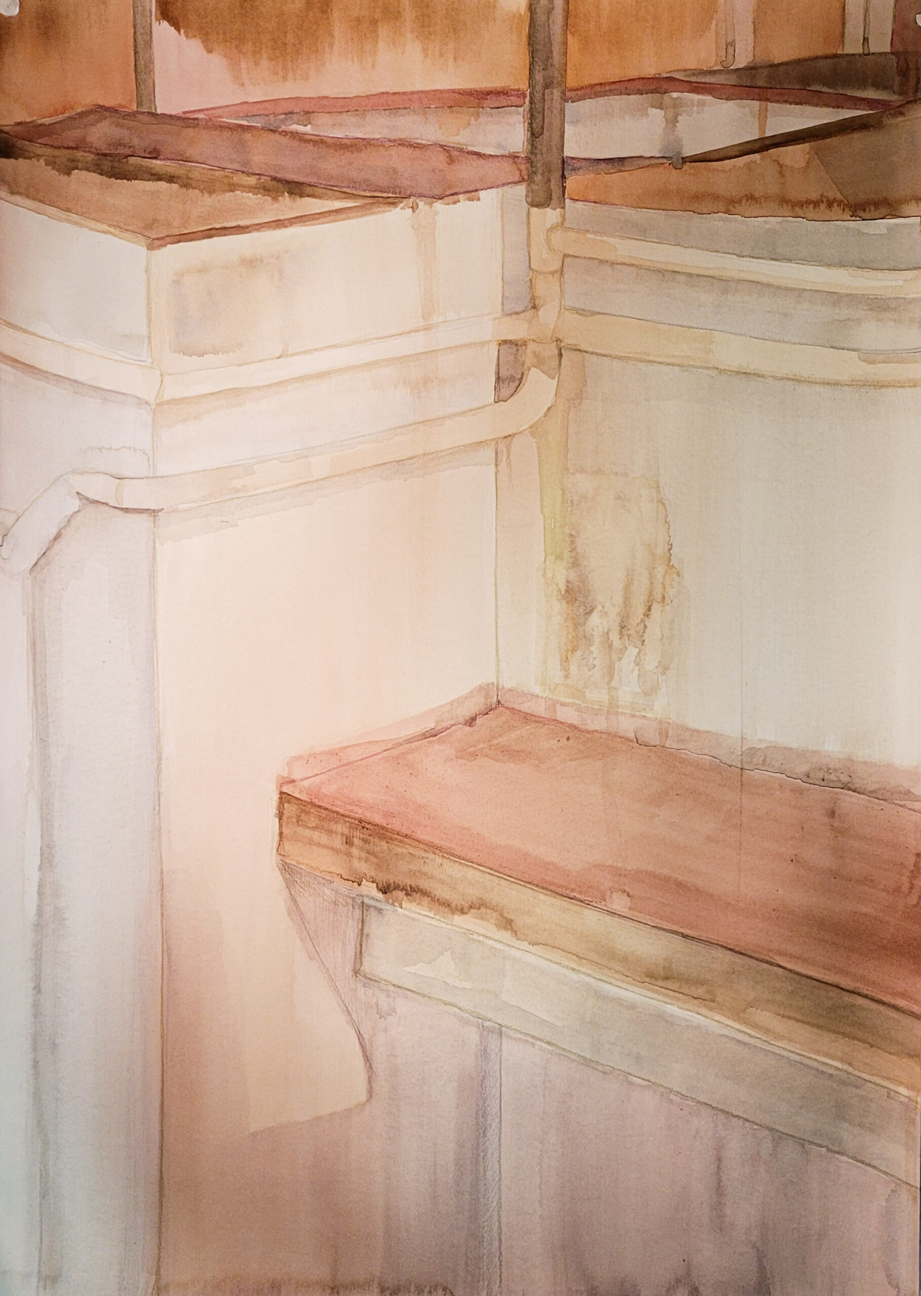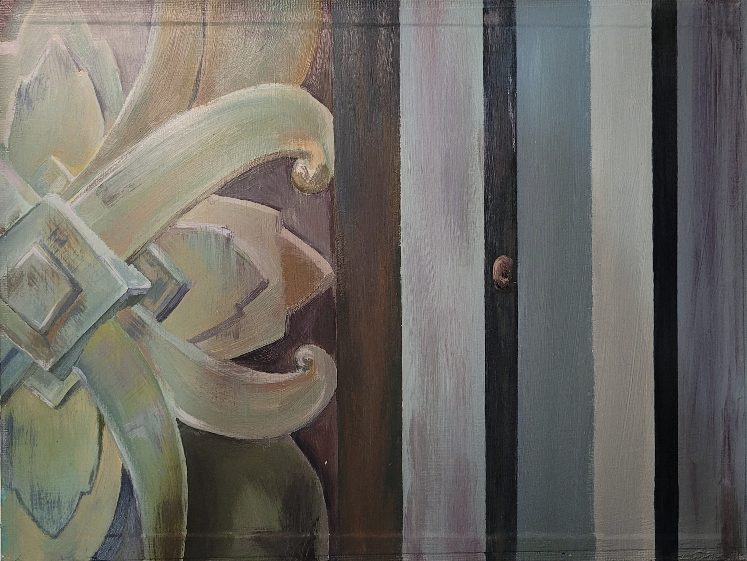 És un treball que explora el desgast de la ciutat a través de l’observació dels efectes del temps i dels factors meteorològics en elements urbans com escultures, portes i tanques. Aquests elements sovint presenten motius inspirats en la natura, com fulles i formes orgàniques, fet que evidencia la relació constant entre l’entorn urbà i el món natural. El procés de recerca va començar amb un recorregut per la ciutat, documentant fotogràficament els detalls que cridaven l’atenció, que posteriorment en l’experimentació pictòrica, mitjançant diverses tècniques com l’acrílic i l’aquarel·la. Ha estat un procés d’experimentació i de prova-error, cosa que permet reflexionar sobre com la ciutat integra i dialoga amb la natura, tant a través dels materials com de l’erosió que el temps hi deixa.